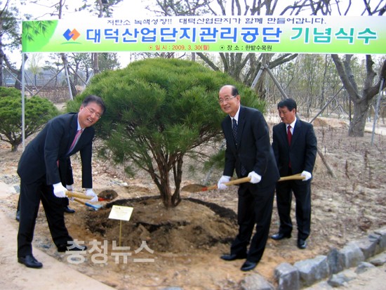 ▲ 최상권 이사장 과 김광식 전무이사가 저탄소녹색성장 기념식수를 하고 있다