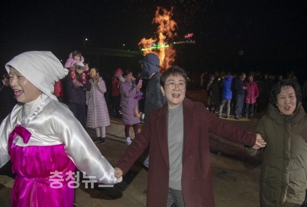 주민과 방문객들은 보름달을 사를 기세의 큰 불로 승화한 대형 소원달집 앞에서 각자 새해 소망과 행복을 기원하는 시간을 가졌다.