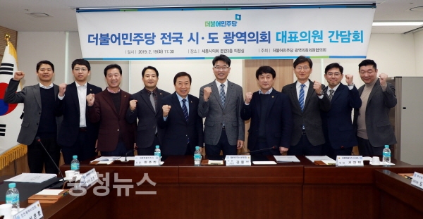 더불어민주당 광역의원협의회(회장 김용석)는 19일 세종시의회 3층 의정실에서 상병헌 세종시 대표 의원의 사회로 더불어민주당 광역의회 대표의원 간담회"를 개최했다.