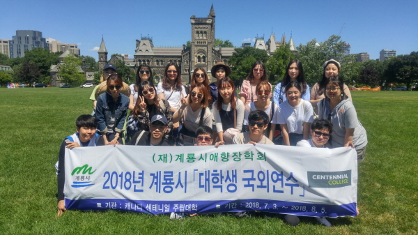 올해 연수는 7월부터 4주간의 일정으로 캐나다 센테니얼 주립대학(Centennial College)에서 ▴영어 및 리더십 과정 수강 ▴토론토 지역 기업 및 관공서 탐방 ▴계룡시 홍보대사 수행 등의 프로그램이 진행된다.