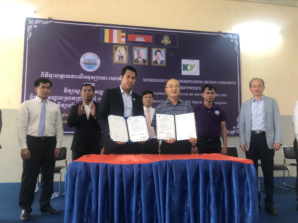 건양대학교(총장 이원묵) 웰다잉 융합연구 교육센터(연구책임자 김광환 교수)가 20일 캄보디아 현지 캄보디아 국립사회부 대학교(NISA)에서 업무협약(MOU)을 체결했다.