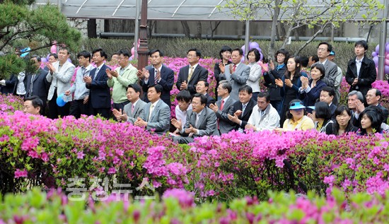 안면도국제꽃박람회 성공 기원을 위한 영산홍 축제가 13일 오후 충남도청 후생관 영산홍 뜰에서 개최됐다.