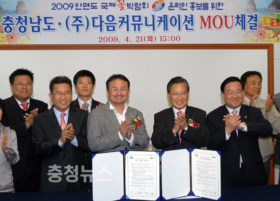 충남도-㈜다음커뮤니케이션 온라인 홍보를 위한 공동협력 양해각서 체결 오는 23일 개최되는 '2009 안면도 국제 꽃박람회' 개막식이 인터넷을 통해 전세계로 생중계 된다.