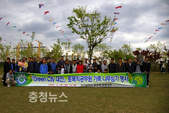 이날 행사에 참석한 대전광역시 공무원 토목직회 회원(회장 조영찬)들은 “서로서로 나무심기행사에 동참한 회원들을 격려하며 오늘 토목직 공무원 가족들이 심은 나무 한 그루가 지속가능한 도시발전과 Green City 대전 만들기의 초석이 될 것이다.” 라고 말하며 이마에 맺힌 땀방울을 닦았다.