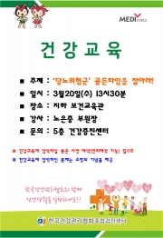 이날 정기 건강강좌는 당뇨병 전 단계 관리 예방법에 대해 소개할 예정이며, 별도의 신청 없이 누구나 참여가 가능하다.