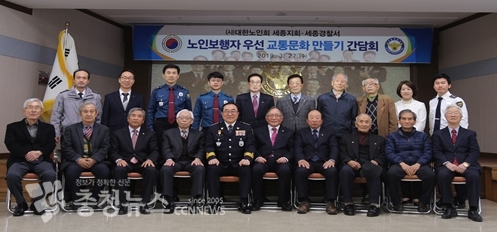 세종경찰서(서장 김정환)는 27일 (사)대한노인회 세종시지회와의 간담회를 통해, 관내 거주하는 어르신들의 교통사고 예방과 최근 어르신들을 대상으로 자주 발생하는 전화사기 등 범죄예방요령에 대해서 교육·홍보를 실시하는 한편, 어르신들이 평소 불편해하거나 궁금해하는 사항들을 청취하고 이를 해소하는 시간을 가졌다.