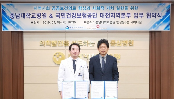 충남대학교병원은 9일 행정동 3층 세미나실에서 국민건강보험공단 대전지역본부와 지역사회 보건의료 발전을 위한 업무협약을 체결했다.