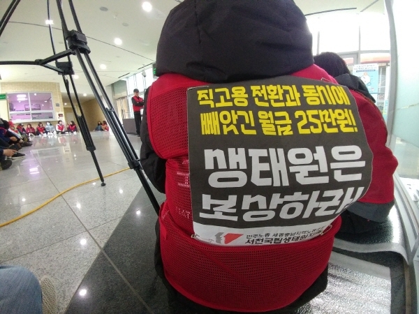 정규직 전환에 따른 삭감된 임금과 근로환경 개선을 촉구하던 국립생태원 노조가 전면파업을 선언했다.