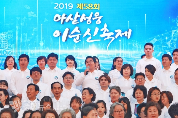 428 대합창단의 일원으로 참가한 오세현 아산시장은 “서로 다른 목소리를 가진 428 대합창단이 아름다운 하모니를 만들어 냈듯이, 아산시민 모두가 화합하고 서로 도와주는 마음으로 이번 축제의 슬로건처럼 희망찬 아산의 미래를 만들어 나갔으면 좋겠다”고 말했다.