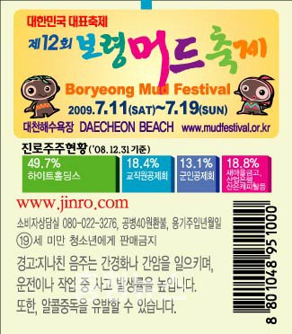 ‘참이슬’ 병소주 1억병에 보령머드축제 홍보문구 표시