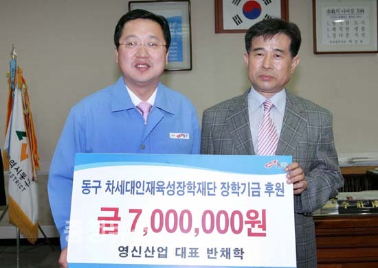 영신산업 반채학 대표가 대전 동구 차세대 인재육성장학재단에 7백만원의 장학기금을 기탁했다.