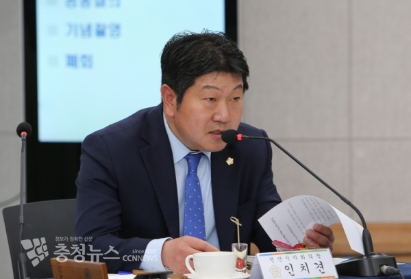 천안시의회 인치견 의장은 10일 천안아산상생협력센터 다목적실에서 열린 양승조 충남도지사와 충남시·군의회의장단과의 간담회에서 천안시의 주요사업에 대해 국·도비를 지원 해 줄 것을 요구했다.