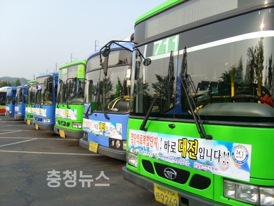시내버스 운송사업조합과 노동조합은 1일 900여대 40여만명의 시민이 이용하는 대전의 시내버스 정면에는 플래카드를 부착하고 2,000여 운수 종사자는 어깨띠를 두르고 22일부터 버스를 운행한다고 밝혔다.