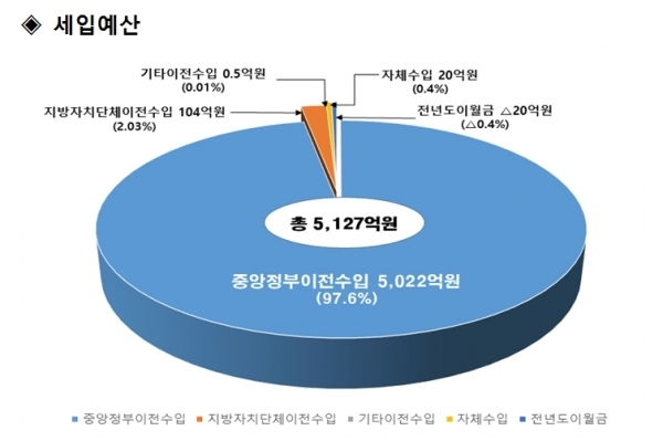 2019년도 제1회 추경예산안은 당초 본예산 8,349억 원보다 5,127억 원(61.4%) 증가한 1조 3,476억 원 규모이다.