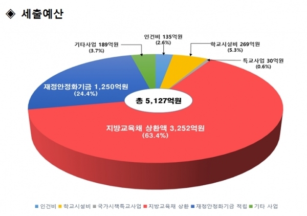 시 교육청은 연도 간 재정불균형을 완화하고 불확실한 장래 재정 여건 변동성에 대응하고자 재정안정화기금으로 1,250억 원을 편성했다.
