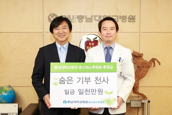 김 회장은“익명을 요구하며 매년 1000만 원씩 3년째 호스피스 발전을 위해 후원금을 보내주신 ‘숨은 기부천사’의 사랑을 전달하고자 충남대병원을 방문하게 됐다”고 밝혔다.