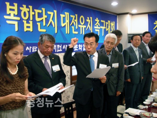 장 회장은 유성의 한 식당에서 가진 촉구대회에서"대전사랑문화협회가 주축으로 다함께 첨단의료복합단지 대전 유치에 심혈을 기우려 달라고 당부했다.