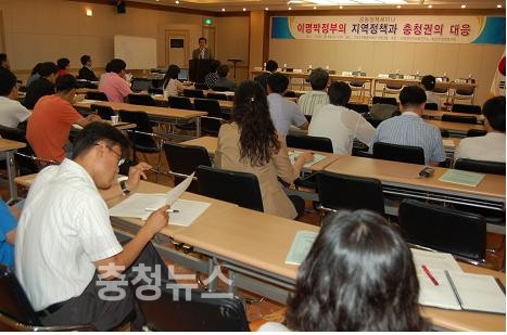 대전시민사회연구소(이사장 안정선)와 민주정책연구원(원장 김효석)이 공동 주최한 ‘이명박 정부의 지역정책과 충청권의 대안모색’ 정책토론회가 8일 대전기독교연합봉사회관 컨벤션홀에서 개최됐다.