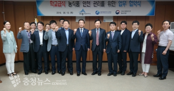 세종시(시장 이춘희)가 세종시교육청, 국립농산물품질관리원 충남지원(이하 농관원)과 업무협약을 맺고 안전한 학교급식 농식품을 공급하기 위해 상호 협력하기로 했다.