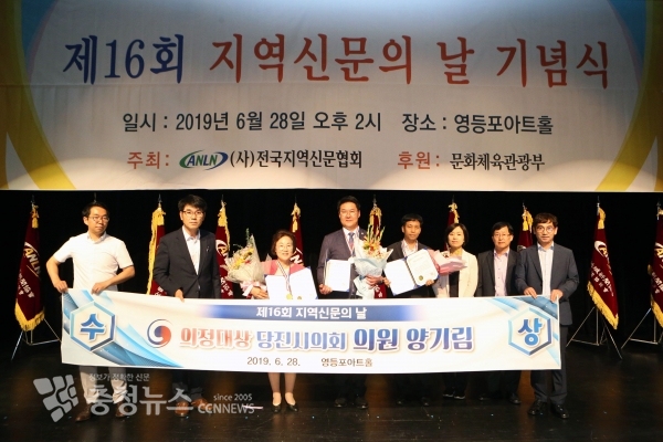 당진시의회(의장 김기재) 양기림 의원은 28일 영등포아트홀에서 전국 340개 지역신문사가 회원사로 가입돼 있는 사단법인 전국지역신문협회 주관으로 개최된‘제16회 지역신문의 날' 기념식에서 의정대상 기초의원부문을 수상하는 영광을 안았다.