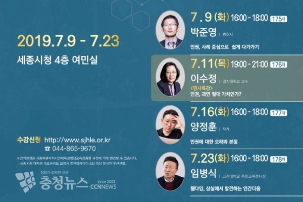 나머지 강연은 당초와 동일하게 9일과 16일, 23일 16시부터 시청 여민실에서 열린다.