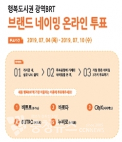 행복청(청장 김진숙)과 행정도시권 내 7개 지방자치단체*, 한국토지주택공사 세종특별본부는 지난 5월부터 행복도시권에서 운영 중인 광역 간선급행버스체계(이하 BRT)에 대한 이름(네이밍)을 공모해 오고 있다.