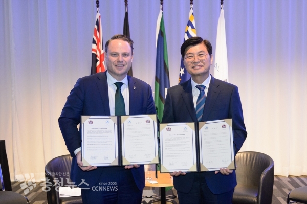이춘희 시장은 9일 호주 브리즈번 컨벤션센터에서 아드리안 슈리너(Adrian Schrinner) 브리즈번 시장과 스마트시티 조성 정책개발 협력 활성화 및 우호관계 발전을 위한 업무협약을 맺었다.