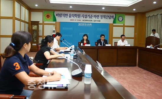대전시의회 김인식 의원은 (비례, 민주당) 12일 오후2시 , 시의회4층 대회의실에서 윤병태 대전광역시교육위원회 교육위원 및 학원연합회, 음악학원 원장 등 관계자 외 20여명이 참석한 가운데 ‘바람직한 음악학원 시설기준마련’을 위한 관계자 초청 정책간담회’를 개최했다.