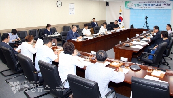 당진시의회(의장 김기재) 총무위원회(위원장 조상연)는 19일 시의회 대회의실에서 당진시 문화예술인과의 간담회를 가졌다.