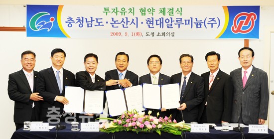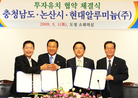 이완구 지사는 "이들 업체가 입주하면 논산은 알루미늄 제품생산의 메카로 부상하면서 지역경제 활성화에 큰 도움이 될 것"이라며 "해당 기업들이 계획대로 공장을 건립 가동할 수 있도록 행.재정적 지원을 아끼지 않겠다"고 약속했다.