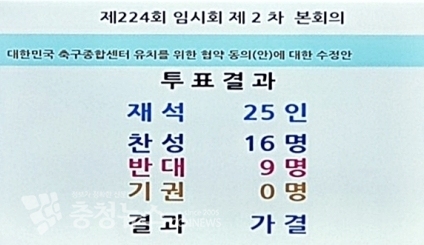 천안시의회 찬성 16표, 반대 9표로 동의안 처리