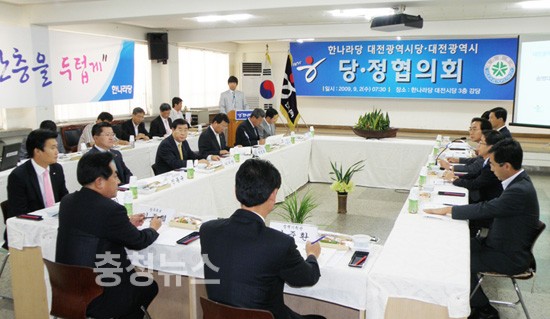 박성효 대전시장과 한나라당 대전시당은 2일 오전 시당 회의실에서 당정협의회를 갖고 지역 현안 해결 및 내년도 국비확보에 주력하기로 합의했다.