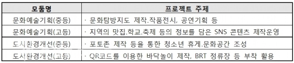 기획단원들은 각 모둠별 프로젝트로 단원들의 의견을 수렴해 문화탐방지도 제작, SNS 콘텐츠 제작, 청소년 휴게·문화공간 조성, 큐알(QR)코드를 이용한 바닥놀이 등을 선정해 추진한다.