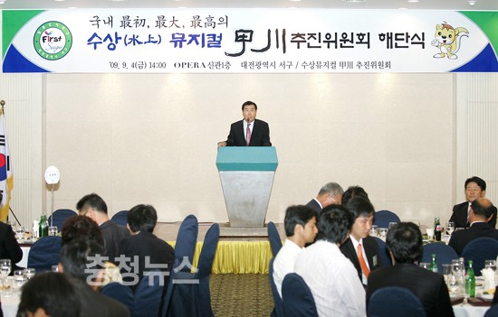 대전광역시 서구(구청장 가기산) 수상뮤지컬 갑천 추진위원회(위원장 강도묵)는 지난 4일 오후 2시 오페라웨딩 별관 1층에서 수상뮤지컬 갑천의 성공적 개최를 자축하고 행사를 최종 마무리하는 해단식을 가졌다.