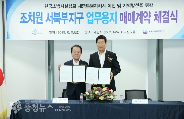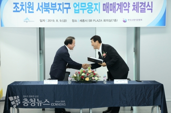 이날 시와 협회가 계약 체결한 토지는 조치원 서북부지구 업무용지 4,444㎡로 계약금액은 약 46억 원이다.