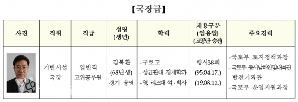 행복청 김복환 기반시설국장 승진인사 발령 - 8월12일