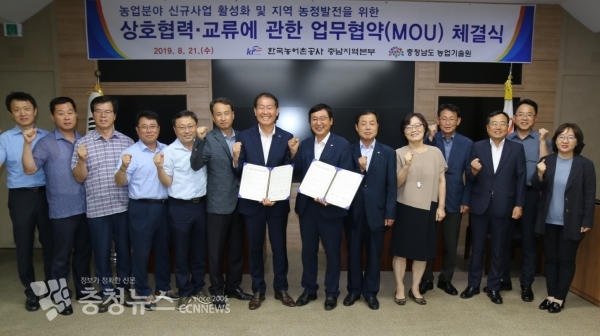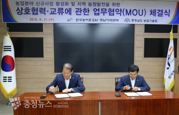 한국농어촌공사 충남본부는 21일 충청남도 농업기술원과 ‘농업 분야 신규사업 활성화와 지역 농정발전을 위한 업무협약’을 체결했다.