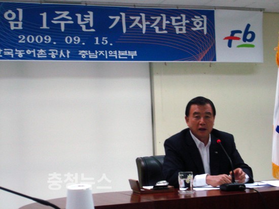 홍문표 사장은 오는 17일 취임1주년을 맞아 15일 오후 한국농어촌공사 충남지역본부에서 충남지역 언론사 간담회에서 그동안 경영선진화,4대강,새만금 등 공사 사업에 대한 자체 평가 결과를 설명을 했다.