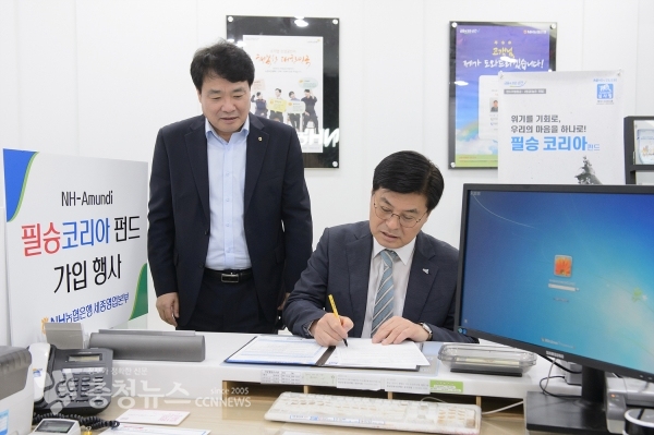 이춘희 세종특별자치시장이 26일 NH농협 세종시청점에서 ‘필승코리아 펀드’에 가입했다.