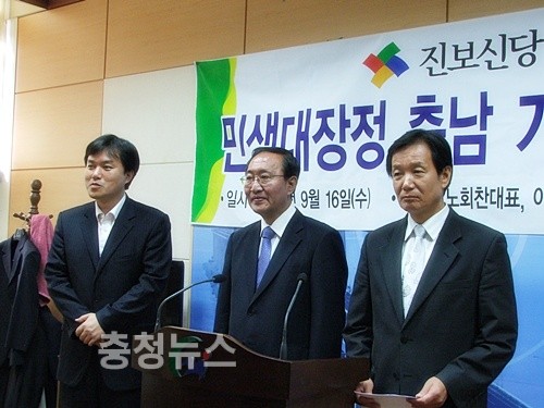 "이명박 대통령 빨리 세종시에 대한 명확한 입장 내놓아야 할 것" 진보신당 노회찬 대표가 16일 충남도청에서 기자간담회를 갖고 최근 논란의 중심에 있는 세종시 건설사업 원안 추진에 대한 강경한 입장을 밝혔다.