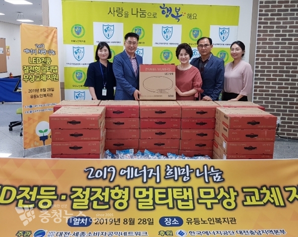 (사)대전세종소비자공익네트워크(회장 도정자)는 28일 대전 유등노인복지관에서 에너지 희망나눔 LED 전등, 절전형 멀티콘센트 무상 교체 사업을 위한 업무 협약을 체결했다.
