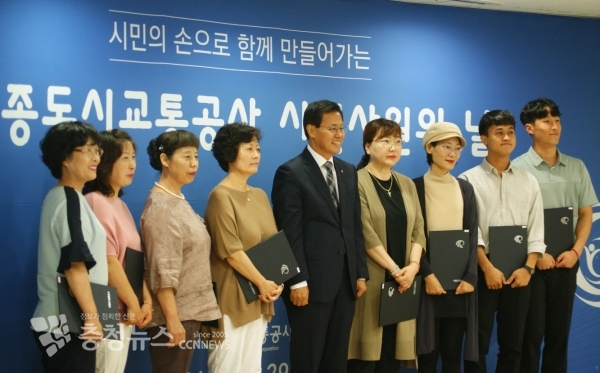 세종도시교통공사는 29일 공사 회의실에서 순수 자원봉사를 받아 운영하고 있는 ‘버스타고 서비스평가단’과 ‘승하차도우미’를 초청해 ‘시민사원의 날’행사를 열고 그 동안의 노고를 치하하고 격려의 시간을 가졌다.