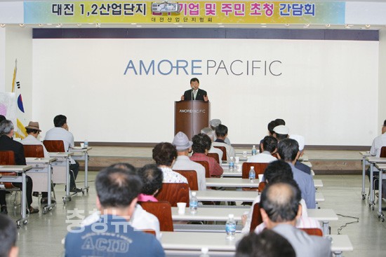 박성효 대전시장은 22일 대덕구 대화동 아모레퍼시픽 대전공장에서 열린 ‘대전산업단지 입주기업 및 주민 초청 간담회’에 참석, “입주기업과 주민의 의견을 최대한 반영해 개발계획을 수립, 대전산단을 친환경적인 도시형 명품 첨단단지로 탈바꿈시키겠다”고 밝혔다.