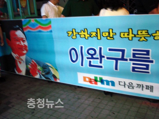지난 8월13일 대전동구청이 주관한 영시축제에서도 자신의 지지자들인 이완구를 사랑하는 모임(http://cafe.daum.net/ok219완사모)회원 200여명이 행사장에 입장하는 이완구 지사를 연호하며 지지와 성원을 보내는 등 마치 대선후보 같은 장면을 연출하기도 했다