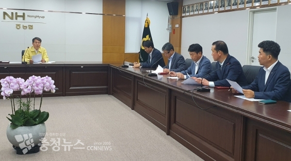 조소형 농협 충남지역본부장은 5일 “북상하는 제13호 태풍 ‘링링’대비 시군지부장 긴급 재해대책회의를 개최하여 철저한 사전 대비로 태풍피해로부터 농업인과 하우스시설, 축사, 농작업장이 피해를 입지 않도록 만전을 기해 줄 것”을 당부했다.