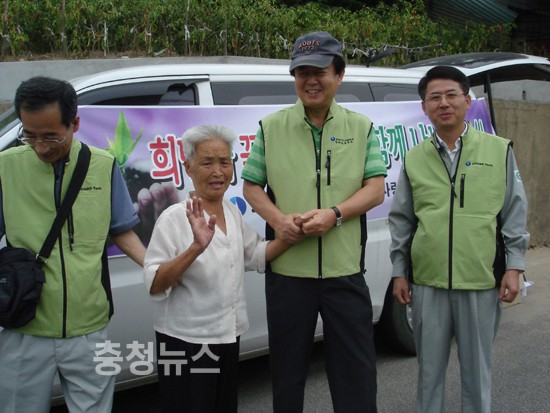 ▲ 김칠환 (주)한국가스기술공사 과 김갑종 충청지사장 수리 봉사에 고마워하는 노인