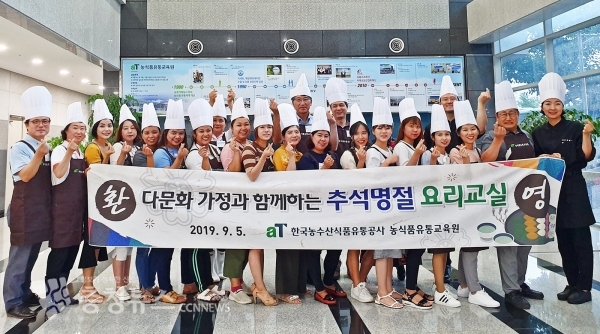 한국농수산식품유통공사(aT, 사장 이병호) 농식품유통교육원은 5일 추석 명절을 맞아 지역의 결혼이주여성을 초청하여 ‘다문화가정과 함께하는 요리교실’을 개최했다.