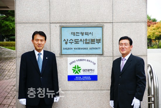 2009 수돗물 관리 전국 최우수 기관으로 선정되어 표창과 현판을 수상한 대전광역시가 28일 상수도사업본부(본부장 김낙현)에서 현판식을 가졌다. 이날 현판식에서는 김홍갑 행정부시장이 참석해 자축하고 직원들에게 그동안의 노고를 치하했다.