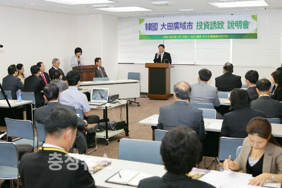 대전시가 일본에서 벌이고 있는 투자 마케팅이 연일 성과를 거두고 있다. 시에 따르면 박성효 대전시장이 28일 두번째 일본 출장지인 후쿠오카 중소기업진흥센터에서 큐슈지역 경제인들을 대상으로 한 투자유치설명회와 제2회 경제교류 상담회를 개최했다.