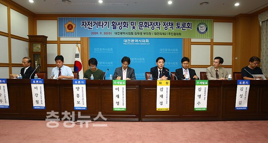대전시의회 김재경 의원 (부의장)은 30일 오후 의회 4층 대회의실에서 김성길 공주대학교 교수 및 각계 전문가를 참석한 가운데 ‘자전거타기 활성화 및 문화정책’을 위한 토론회를 개최했다.